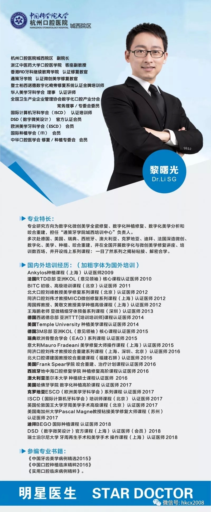 “喜欢杭州这座城市——没有理由,就是喜欢。因为我的目标就是要成为最专业的口腔科医生,所以一定要选择口腔专科医院开始我的职业生涯。”黎曙光副院长的职业生涯是从杭州口腔医院起步的。
